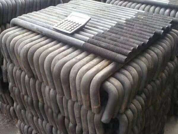地腳螺栓一般用Q235、Q345,即為光圓的。好像我還沒有見到過用螺紋的情況,不過要是受力需要的話也未嘗不可。螺紋鋼(Q345)強度大,做螺母的絲扣沒有光圓的容易。對于光圓地腳螺栓而言,埋深一般為其直徑的25倍,然后做一個120mm左右長的90度彎鉤。